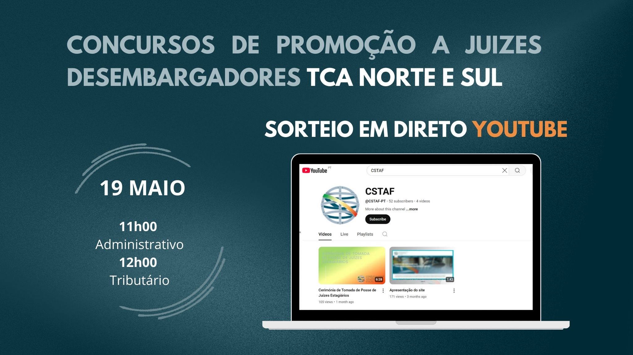 Realiza-se no próximo dia 19 de maio de 2025 o sorteio público dos diversos candidatos pelos membros do júri dos concursos para as Secções de Contencioso Administrativo e Secções de Contencioso Tributário dos Tribunais Centrais Administrativos Norte e Sul.